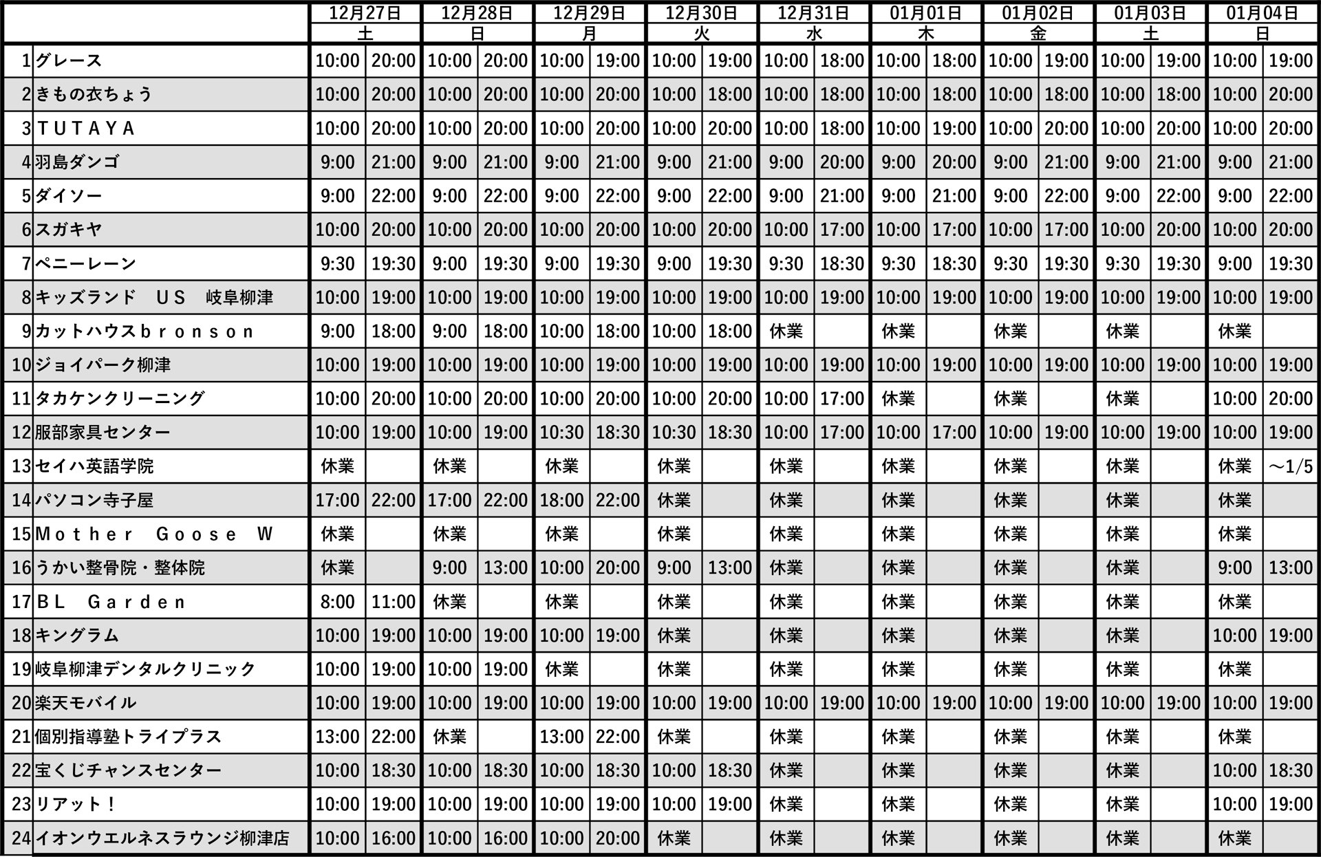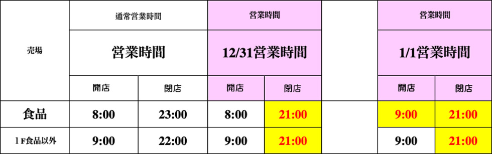 年末年始 営業時間